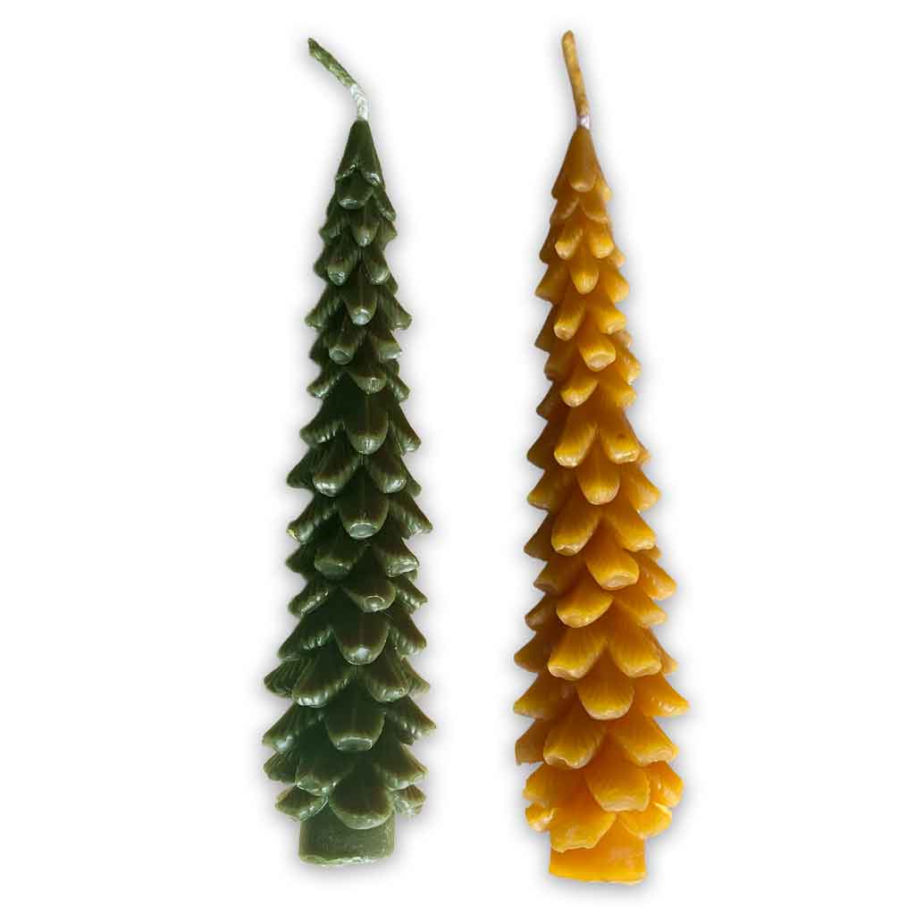 Pack de Velas artesanales de cera de abeja en forma de abeto – Un toque natural y sostenible para tu mesa navideña.